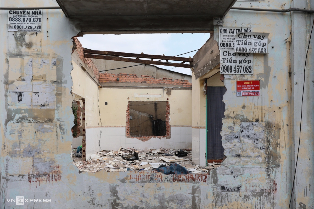Một dãy nhà đã được chủ hộ hoàn tất giải tỏa hơn một tuần nay, giúp không gian thoáng đãng hơn.