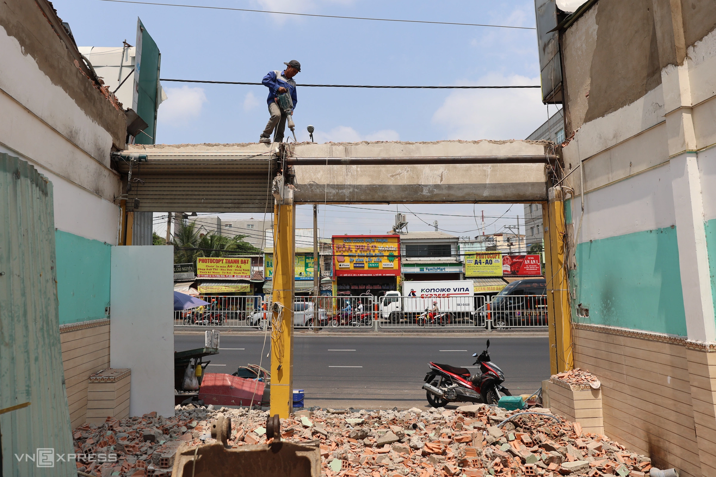 Những ngày qua, nhiều căn nhà trên quốc lộ 13, đoạn qua phường Hiệp Bình được phá dỡ, lùi sâu vào trong, chờ triển khai công trình.